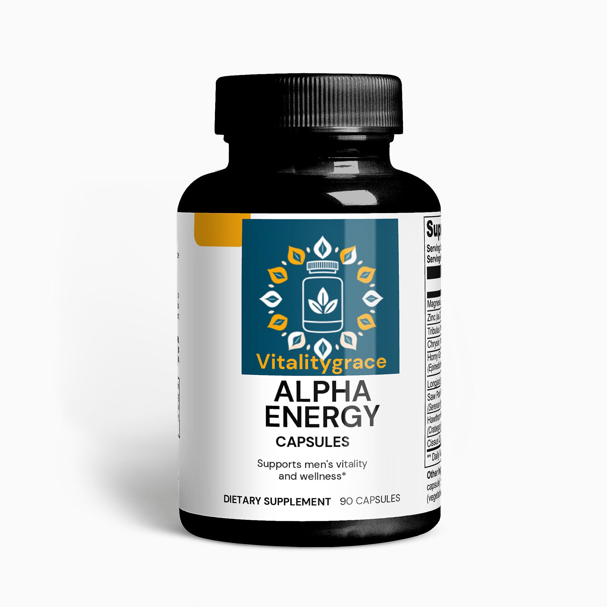 Support Men's Vitality and Wellness: Our carefully crafted dietary supplement is designed to promote men's health and well-being without containing testosterone. Formulated with a blend of key nutrients including magnesium, zinc, tribulus terrestris, chysin, horny goat weed, longjack, saw palmetto berries, hawthorn berries, and cissus quadrangularis, our product supports various aspects of men's health. *
